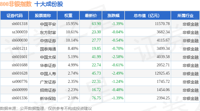 800非银(399966)指数十大成份股详情如下: