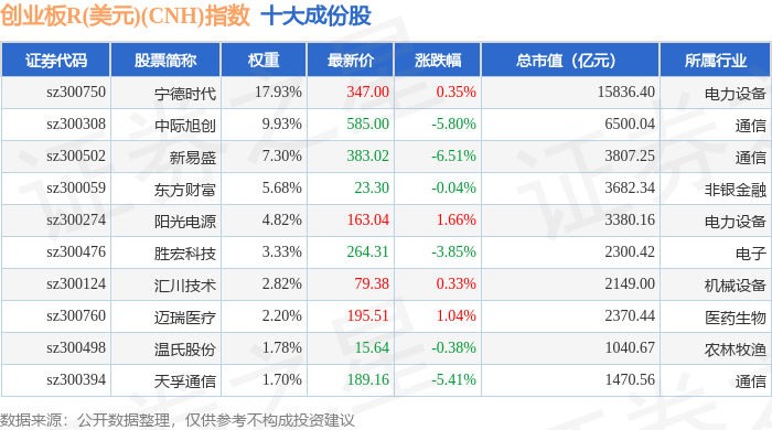创业板R(美元)(CNH)(470007)指数十大成份股详情如下: