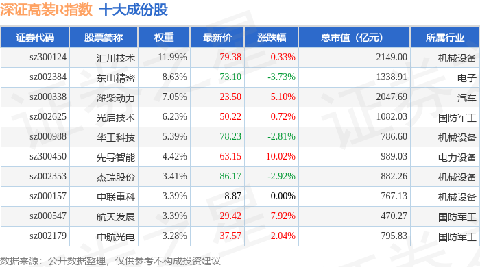 证券之星消息,1月23日,深证高装R(470037)指数报收于3960.58点,涨2.53%,成交913.41亿元,换手率4.75%。当日该指数成份股中,上涨的有40家,迈为股份以20.0%的涨幅领涨,下跌的有9家,东山精密以3.73%的跌幅领跌。