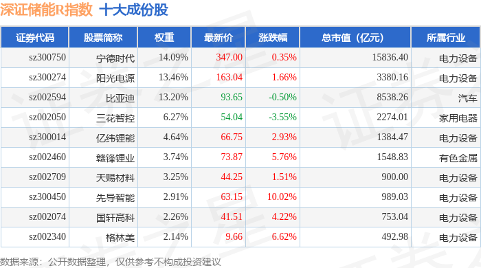 深证储能R(470036)指数十大成份股详情如下: