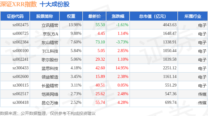 深证XRR(470046)指数十大成份股详情如下: