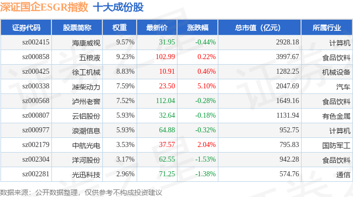 深证国企ESGR(470055)指数十大成份股详情如下: