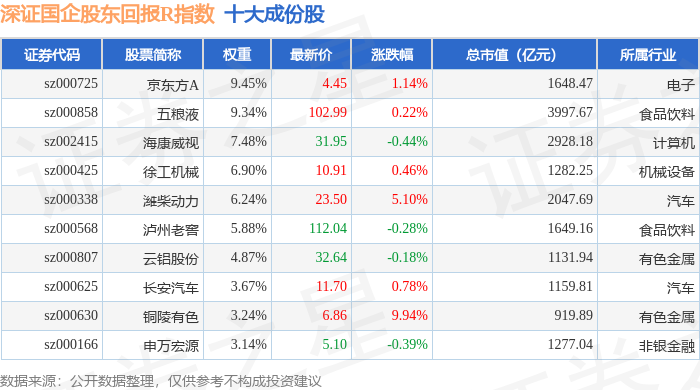 深证国企股东回报R(470064)指数十大成份股详情如下:
