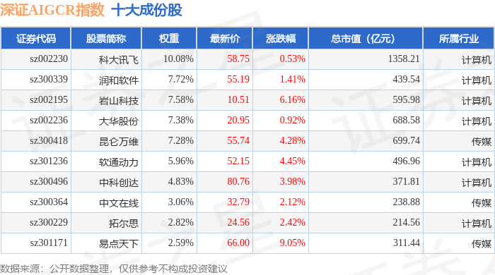 深证AIGCR(470075)指数十大成份股详情如下: