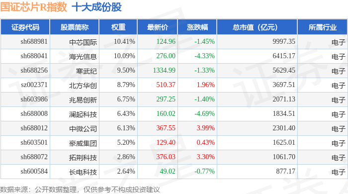 国证芯片R(480017)指数十大成份股详情如下: