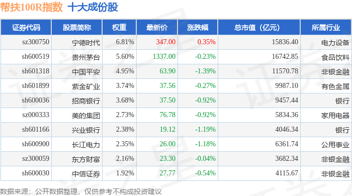 资金流向方面,帮扶100R(480065)指数成份股当日主力资金净流出合计112.61亿元,游资资金净流入合计9.97亿元,散户资金净流入合计102.65亿元。成份股资金流向详情见下表: