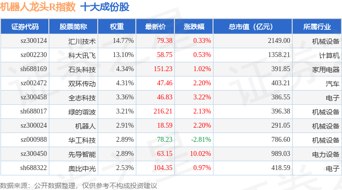 机器人龙头R(480071)指数十大成份股详情如下: