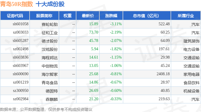 资金流向方面,青岛50R(489011)指数成份股当日主力资金净流出合计2.19亿元,游资资金净流出合计2.16亿元,散户资金净流入合计4.34亿元。成份股资金流向详情见下表: