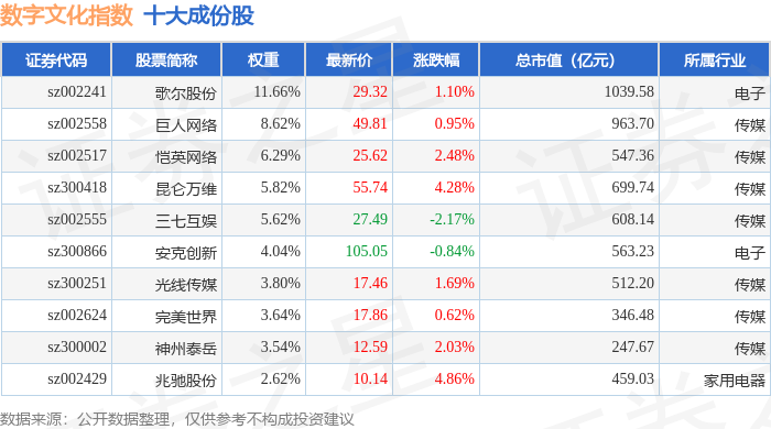 资金流向方面,数字文化(970047)指数成份股当日主力资金净流入合计11.76亿元,游资资金净流出合计1.51亿元,散户资金净流出合计10.25亿元。成份股资金流向详情见下表: