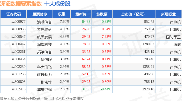 证券之星消息,1月23日,深证数据要素(970053)指数报收于4449.22点,涨1.64%,成交787.58亿元,换手率4.32%。当日该指数成份股中,上涨的有42家,四维图新以9.98%的涨幅领涨,下跌的有8家,慧博云通以1.87%的跌幅领跌。
