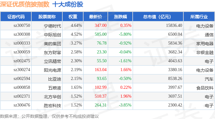 深证优质信披(970065)指数十大成份股详情如下: