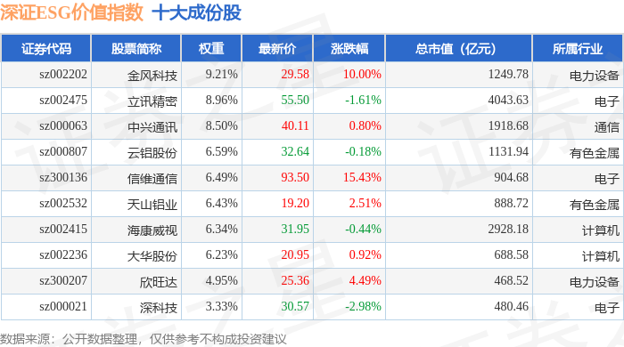 证券之星消息,1月23日,深证ESG价值(970061)指数报收于2019.18点,涨3.19%,成交956.07亿元,换手率3.67%。当日该指数成份股中,上涨的有35家,信维通信以15.43%的涨幅领涨,下跌的有14家,青松股份以3.66%的跌幅领跌。