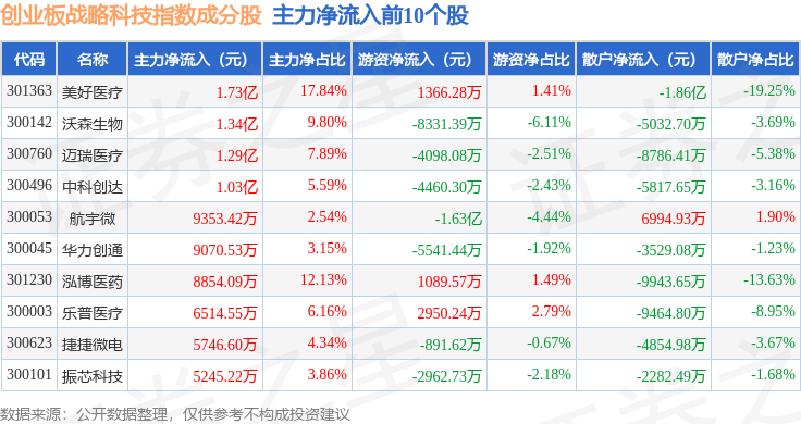 资金流向方面,创业板战略科技(971004)指数成份股当日主力资金净流出合计3.78亿元,游资资金净流出合计9.01亿元,散户资金净流入合计12.79亿元。成份股资金流向详情见下表: