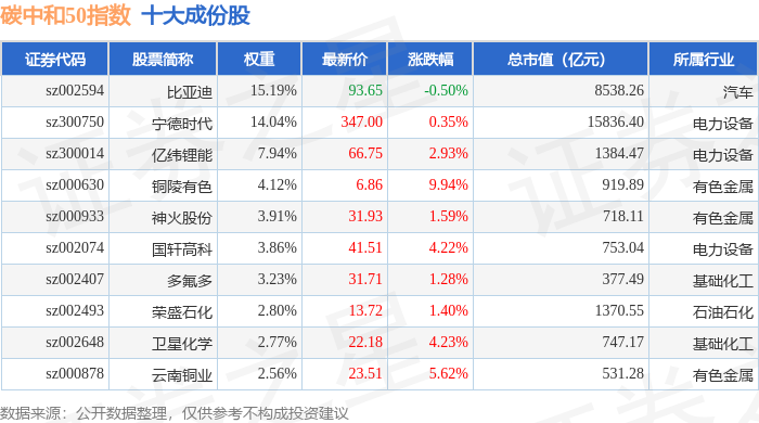 证券之星消息,1月23日,碳中和50(980021)指数报收于2383.06点,涨1.79%,成交619.03亿元,换手率2.1%。当日该指数成份股中,上涨的有39家,太阳能以10.06%的涨幅领涨,下跌的有8家,华峰化学以6.37%的跌幅领跌。