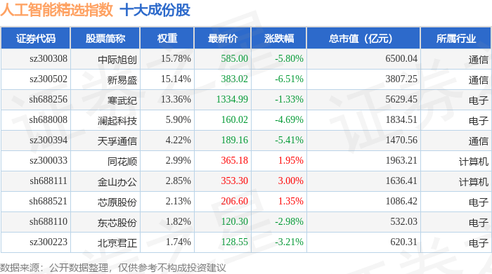 人工智能精选(980087)指数十大成份股详情如下: