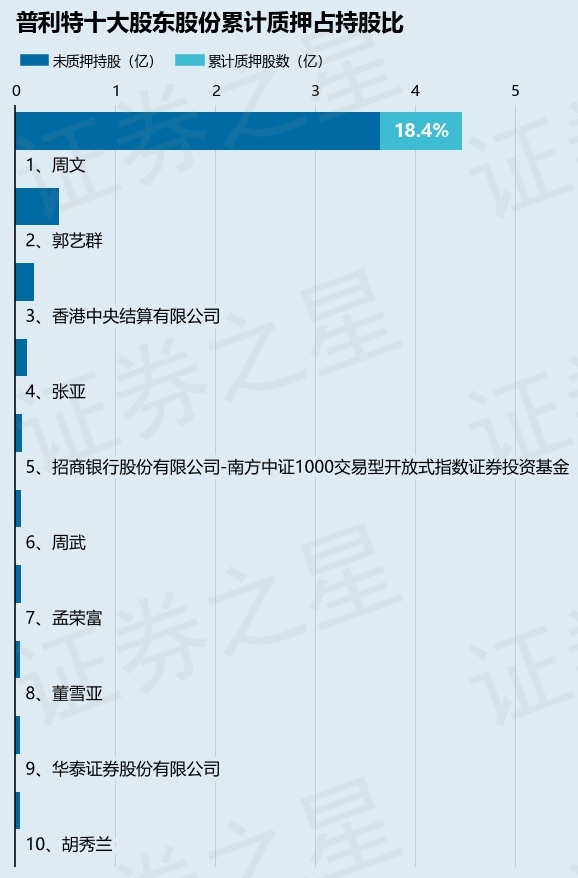 截止本公告日,股东周文已累计质押股份8225.0万股,占其持股总数的18.4%。本次质押后普利特十大股东的累计质押股份占持股比例(占持股比例的计算以公司最新一期财务报表公布的十大股东的持股总数为基准)见下图: