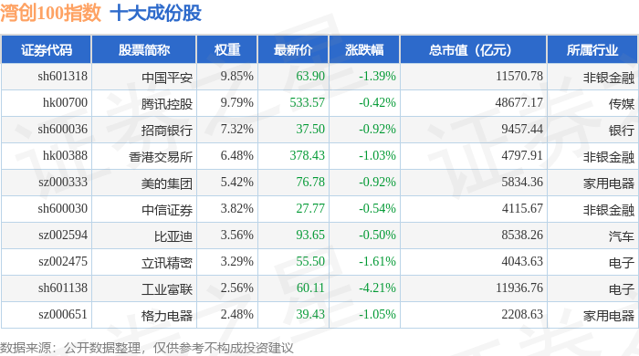 湾创100(980001)指数十大成份股详情如下:
