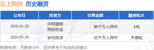 证券之星消息,根据天眼查APP于1月20日公布的信息整理,陕西云上文旅科技有限公司A轮融资,融资额数千万人民币,参与投资的机构包括中财融商,西安财金。