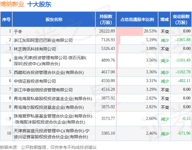 根据博纳影业2025年三季报公布的十大股东详情如下: