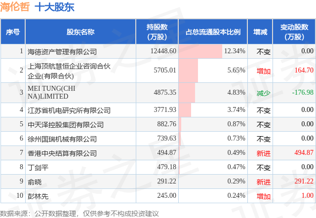 根据海伦哲2025年三季报公布的十大股东详情如下: