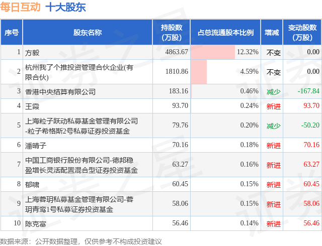 根据每日互动2025年三季报公布的十大股东详情如下: