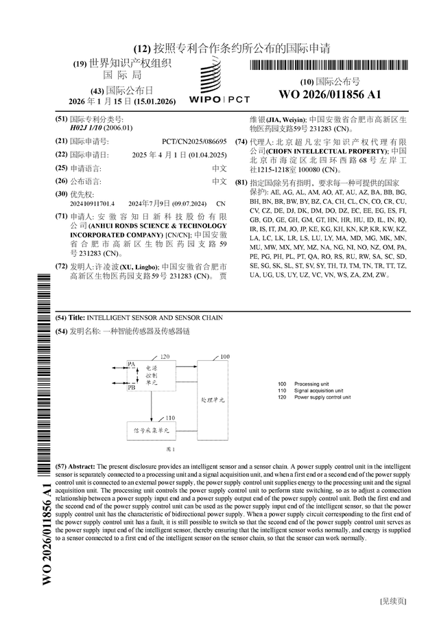 证券之星消息,根据企查查数据显示容知日新(688768)公布了一项国际专利申请,专利名为“一种智能传感器及传感器链”,专利申请号为PCT/CN2025/086695,国际公布日为2026年1月15日。