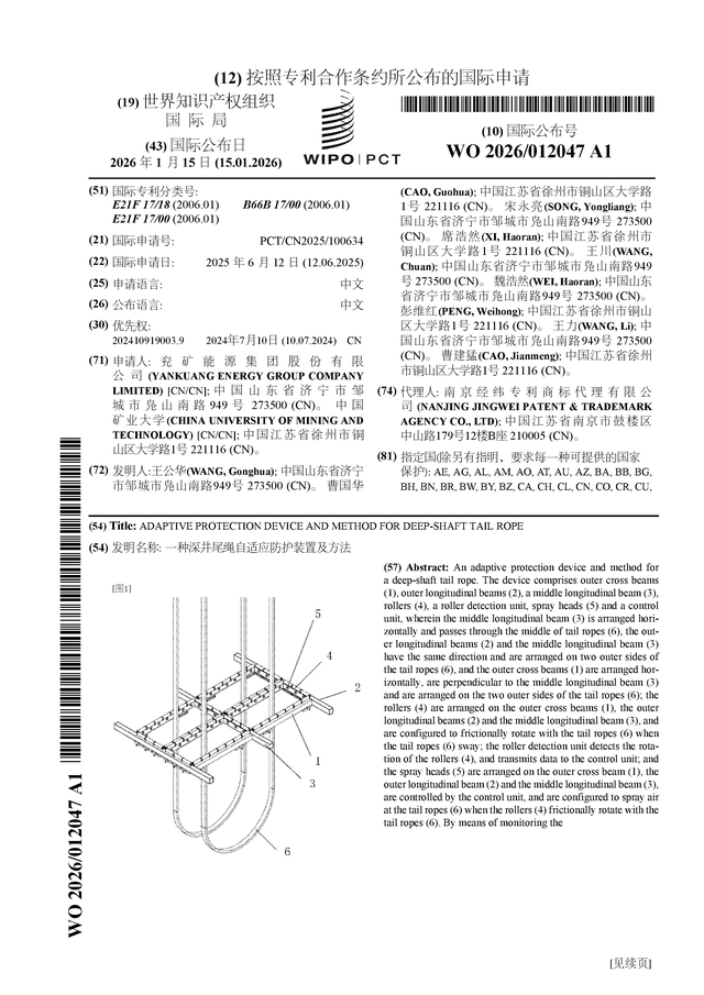 证券之星消息,根据企查查数据显示兖矿能源(600188)公布了一项国际专利申请,专利名为“一种深井尾绳自适应防护装置及方法”,专利申请号为PCT/CN2025/100634,国际公布日为2026年1月15日。