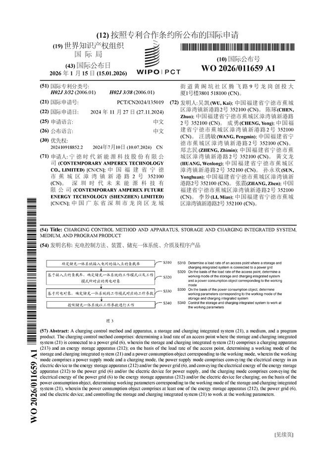 证券之星消息,根据企查查数据显示宁德时代(300750)公布了一项国际专利申请,专利名为“充电控制方法、装置、储充一体系统、介质及程序产品”,专利申请号为PCT/CN2024/135019,国际公布日为2026年1月15日。