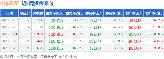 资金流向数据方面,本周山东玻纤主力资金合计净流出2709.7万元,游资资金合计净流出3775.33万元,散户资金合计净流入6485.03万元。本周资金流向一览见下表: