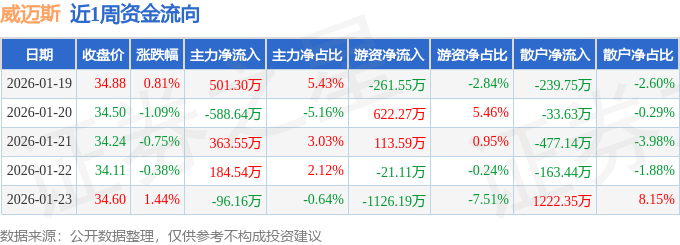 资金流向数据方面,本周威迈斯主力资金合计净流入364.59万元,游资资金合计净流出672.98万元,散户资金合计净流入308.4万元。本周资金流向一览见下表: