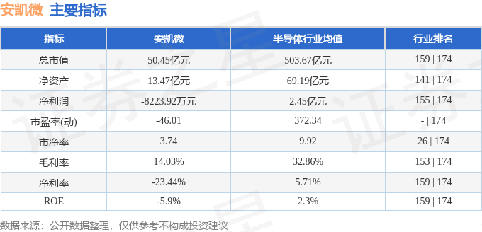 该股主要指标及行业内排名如下: