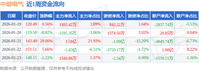 资金流向数据方面,本周中熔电气主力资金合计净流入3487.97万元,游资资金合计净流出1.23亿元,散户资金合计净流入8804.01万元。本周资金流向一览见下表: