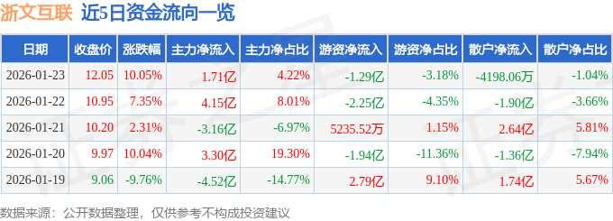 1月23日的资金流向数据方面,主力资金净流入1.71亿元,占总成交额4.22%,游资资金净流出1.29亿元,占总成交额3.18%,散户资金净流出4198.06万元,占总成交额1.04%。