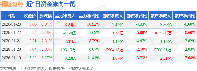 1月23日的资金流向数据方面,主力资金净流入6.29亿元,占总成交额10.92%,游资资金净流出2.49亿元,占总成交额4.33%,散户资金净流出3.8亿元,占总成交额6.6%。