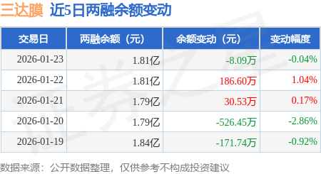 证券之星消息,1月23日,三达膜(688101)融资买入687.93万元,融资偿还696.02万元,融资净卖出8.09万元,融资余额1.81亿元。
