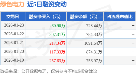 证券之星消息,1月23日,绿色电力(159625)融资买入135.5万元,融资偿还196.4万元,融资净卖出60.9万元,融资余额723.44万元,近20个交易日中有11个交易日出现融资净买入。
