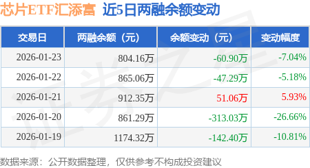证券之星消息,1月23日,芯片ETF汇添富(516920)融资买入376.96万元,融资偿还437.86万元,融资净卖出60.9万元,融资余额804.16万元。