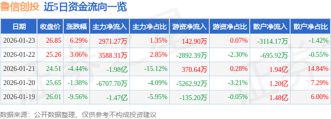 1月23日的资金流向数据方面,主力资金净流入2971.27万元,占总成交额1.35%,游资资金净流入142.9万元,占总成交额0.07%,散户资金净流出3114.17万元,占总成交额1.42%。