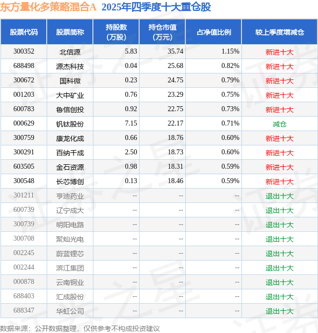 根据2025基金年报公募基金重仓股数据,重仓该股的公募基金共1家,其中持有数量最多的公募基金为东方基金的东方量化多策略混合A。东方量化多策略混合A目前规模为0.29亿元,最新净值1.1122(1月23日),较上一交易日上涨1.8%,近一年上涨53.45%。该公募基金现任基金经理为王怀勋。王怀勋在任的基金产品包括:东方量化成长灵活配置混合A,管理时间为2022年5月17日至今,期间收益率为81.62%;东方沪深300指数增强A,管理时间为2025年9月16日至今,期间收益率为6.56%;东方中证A500指数增强A,管理时间为2025年9月16日至今,期间收益率为12.53%。