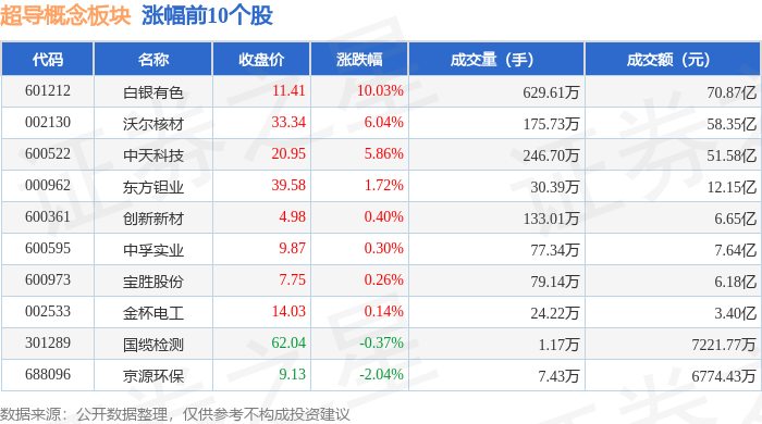 证券之星消息,1月26日超导概念板块较上一交易日上涨0.51%,白银有色领涨。当日上证指数报收于4132.61,下跌0.09%。深证成指报收于14316.64,下跌0.85%。超导概念板块个股涨跌见下表: