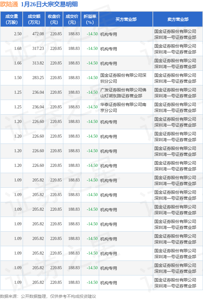 证券之星消息,1月26日欧陆通发生大宗交易,交易数据如下: