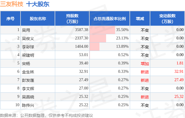 根据三友科技2025年三季报公布的十大股东详情如下: