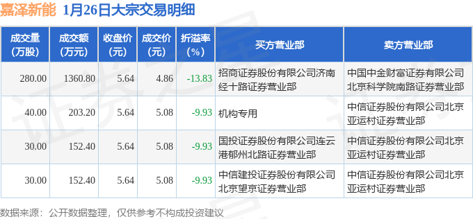证券之星消息,1月26日嘉泽新能发生大宗交易,交易数据如下: