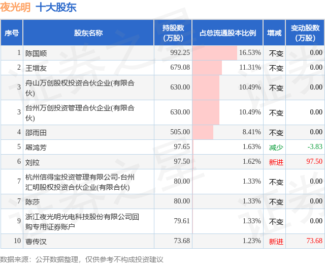 根据夜光明2025年三季报公布的十大股东详情如下: