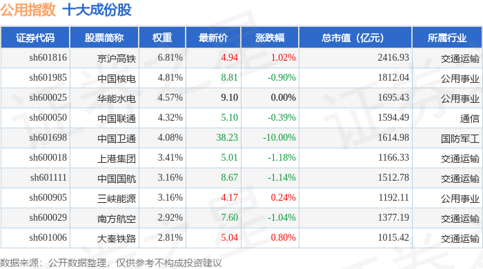资金流向方面,公用指数(000007)成份股当日主力资金净流出合计49.82亿元,游资资金净流入合计19.04亿元,散户资金净流入合计30.79亿元。成份股资金流向详情见下表:
