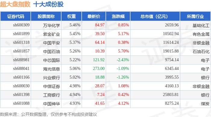 超大盘(000043)指数十大成份股详情如下: