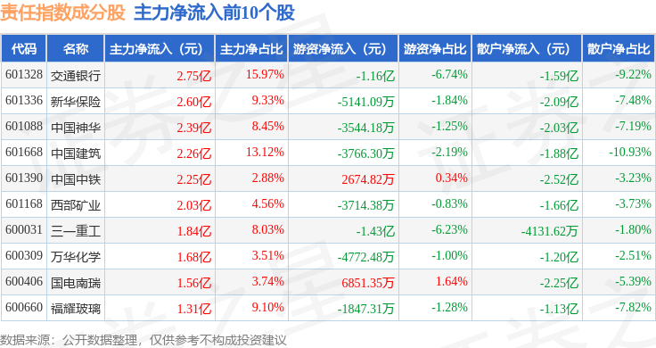 资金流向方面,责任指数(000048)成份股当日主力资金净流入合计1.32亿元,游资资金净流入合计5596.75万元,散户资金净流出合计1.88亿元。成份股资金流向详情见下表: