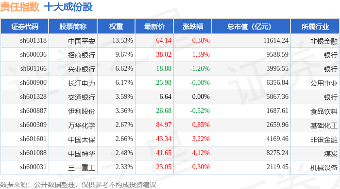 证券之星消息,1月26日,责任指数(000048)报收于1470.24点,涨0.7%,成交1398.7亿元,换手率1.43%。当日该指数成份股中,上涨的有47家,西部矿业以9.99%的涨幅领涨,下跌的有51家,禾迈股份以7.04%的跌幅领跌。