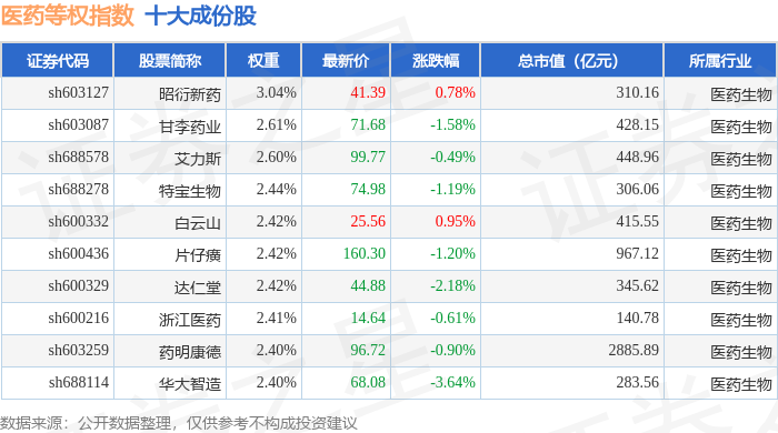 证券之星消息,1月26日,医药等权(000075)指数报收于7201.76点,跌0.09%,成交300.85亿元,换手率1.74%。当日该指数成份股中,上涨的有23家,万泰生物以5.87%的涨幅领涨,下跌的有26家,华大智造以3.64%的跌幅领跌。