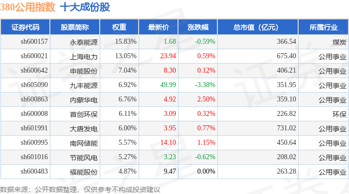 证券之星消息,1月26日,380公用(000113)指数报收于3280.53点,涨0.18%,成交118.48亿元,换手率2.18%。当日该指数成份股中,上涨的有10家,涪陵电力以5.33%的涨幅领涨,下跌的有6家,九丰能源以3.38%的跌幅领跌。